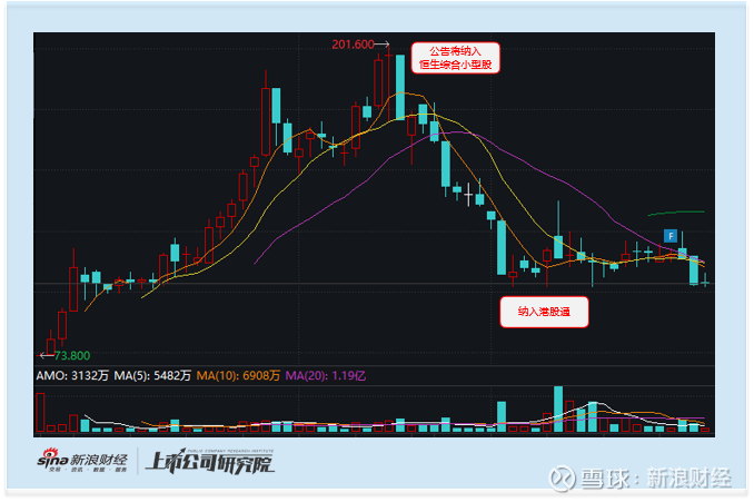 2026年2月13日,恒生指数公司公布季检结果,卧安机器人如期被纳入恒生综合小型股指数,从而获得港股通准入资格。持续发酵的入通利好正式兑现,前期布局的左侧资金开始集中抛售。公告当日股价即暴跌14%,拉开了深度回调的序幕。此后股价一路下行,截至3月8日(即正式入通前一日),股价较高点(2月12日)累计跌幅已达43%,炒作泡沫基本破裂。
