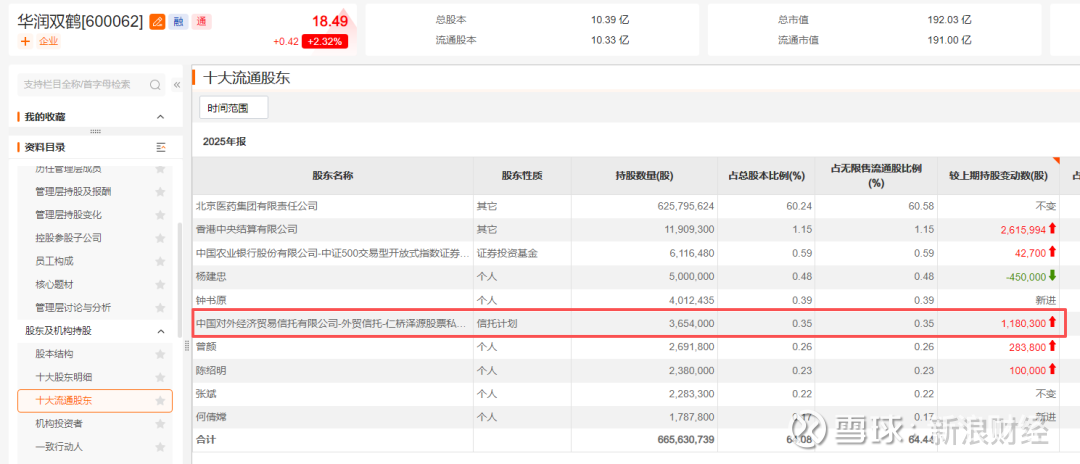 华润双鹤近日发布的年报也显示,截至2025年末,外贸信托-仁桥泽源股票私募证券投资基金持有该公司365.4万股,相较于去年三季度末增持118.03万股。