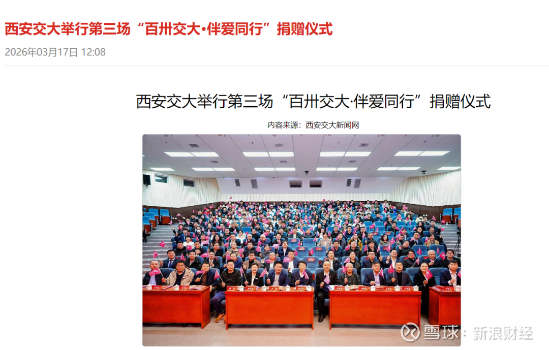 2026年3月29日,西安交通大学官网消息,该校举办第四场“百卅交大·伴爱同行”捐赠仪式。20名校友为母校捐款3亿余元。其中,王文斌、欧新华校友分别捐赠1.3亿与1亿元。