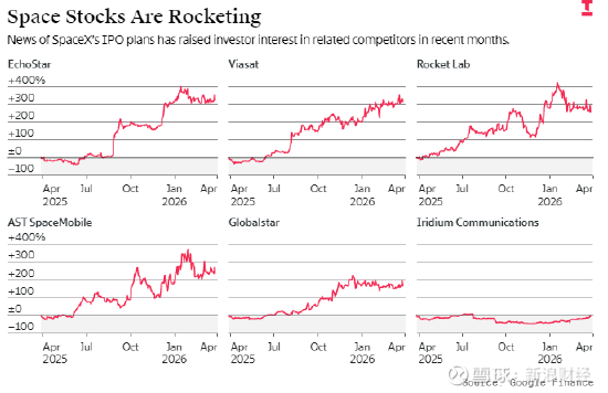 过去一年,火箭发射与卫星公司股价大幅飙升,这源于 SpaceX 私人估值持续走高,且正朝着可能创下纪录的首次公开募股(IPO)推进,点燃了市场对整个太空领域的投资热情。