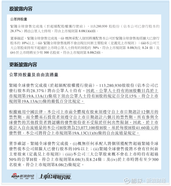 3. 公众持股量及自由流通量披露错误:公告中“公众持股量及自由流通量”章节存在两处关键问题,一是港交所上市规则条文引用错误,该部分内容在招股书中已有明确表述,却未在公告中准确沿用;二是关键信息披露缺失,反映出中介参与方对配售结果公告的披露要求理解不到位,或存在严重审核疏漏,三家联席保荐机构、高伟绅律师事务所、司力达律师事务所均未履行审核义务,核心审核环节出现明显缺位。