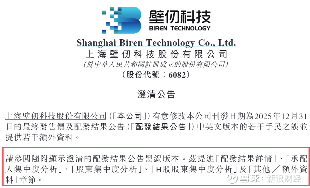 事实上,这并非今年港股市场首例新股配发公告错误事件,2026年以来港股已有3只新股刊发配发结果澄清公告,分别为飞速创新、壁仞科技及优乐赛共享。其中优乐赛共享仅出现一处手数错误,而飞速创新与壁仞科技均存在多项核心内容错误,壁仞科技更是在配发结果详情、承配人集中度分析等五大核心章节出现纰漏,且这两家出现严重公告错误的企业,联席保荐人均包含中金公司。