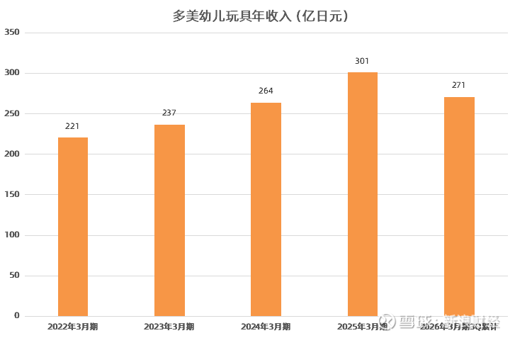 多美公布的财务数据显示,旗下包括多美卡在内的幼儿玩具收入,近几年保持增长走势,其中2025年2-4季度销售额为271亿日元,同比增长11.52%。