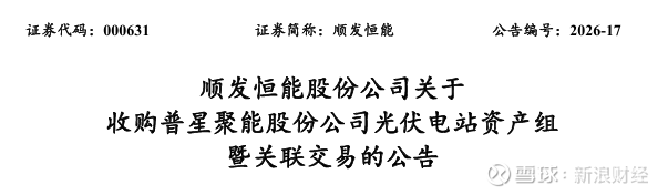 3月31日,顺发恒能发布公告称,公司与普星聚能股份公司(以下简称“普星聚能”)及其全资孙公司杭州普星能源科技有限公司(以下简称“杭州普星”)签署了《光伏电站收购协议》,公司以自有资金向其收购17座光伏电站和运维系统的资产组,本次资产转让不含税价格为人民币18,100万元,增值税税率13%,税额人民币2,353万元,价税合计人民币20,453万元。