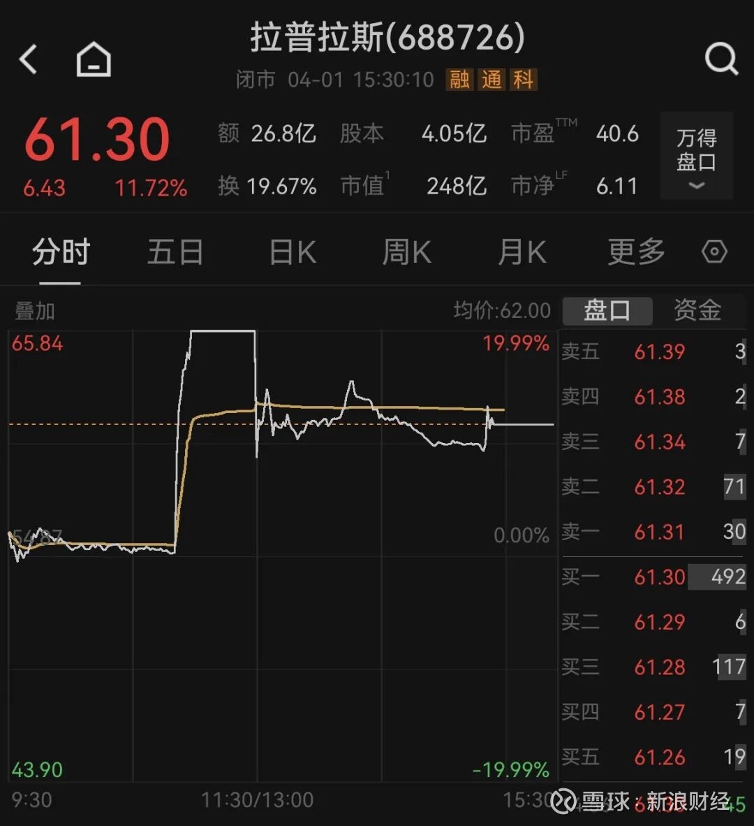 图片来源:公司公告 受上述传闻影响,4月1日上午,拉普拉斯股价直线拉升,股价“20CM”涨停。澄清公告发布后,公司股价午后直线跳水,涨幅一度收窄至8.8%,收盘上涨11.72%。A股光伏概念股多数飘红,Wind光伏指数收涨1.69%,国晟科技涨停,奥特维、晶科能源、捷佳伟创等多股大涨。