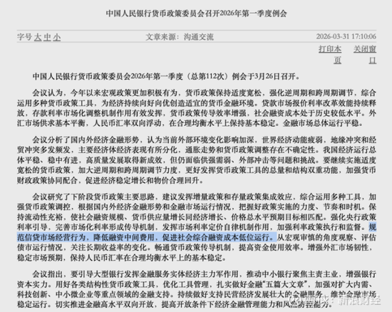 近日,中国人民银行货币政策委员会在2026年第一季度例会中明确提出,将“规范信贷市场经营行为,降低融资中间费用,促进社会综合融资成本低位运行”。这一表述释放出金融监管持续聚焦实体经济与居民部门减负、清理融资环节不合理收费的明确信号。