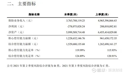 上海人寿偿付能力报告只披露到2021年四季度,据四季度偿付能力报告显示,核心偿付能力119.99%,综合偿付能力124.89%,这一两个指标仅过及格线,未达行业平均水平。更为严峻的是,2021年第三季度,上海人寿成为偿付能力不达标公司,风险等级从B类降至C类。
