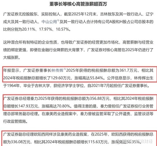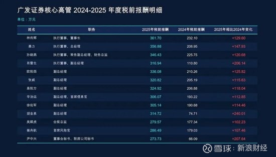 数据是最具说服力的证据。根据广发证券披露的2025年年度报告,公司董事长林传辉、总经理秦力等核心高管的税前报酬均出现了大幅上涨,涨幅普遍超过百分之五十。