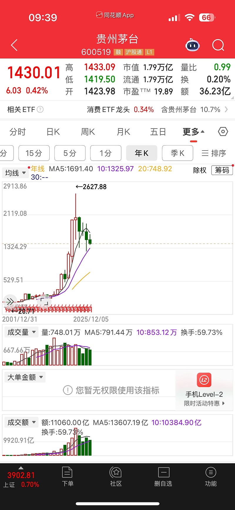 核心矛盾:茅台当前总市值超1.8万亿元,若未来三年净利润复合增速仅5%-6%,难以匹配高估值,“慢增长+高估值”的错配终将引发市场重估。