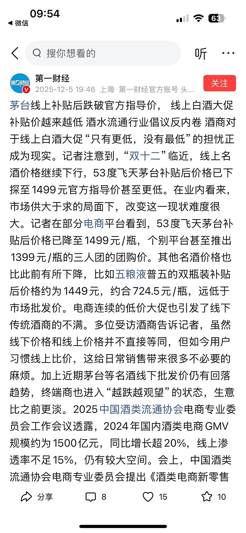 3、渠道与产品结构失衡:直销占比提升乏力,系列酒(如茅台1935)动销不及预期,拖累整体收入;