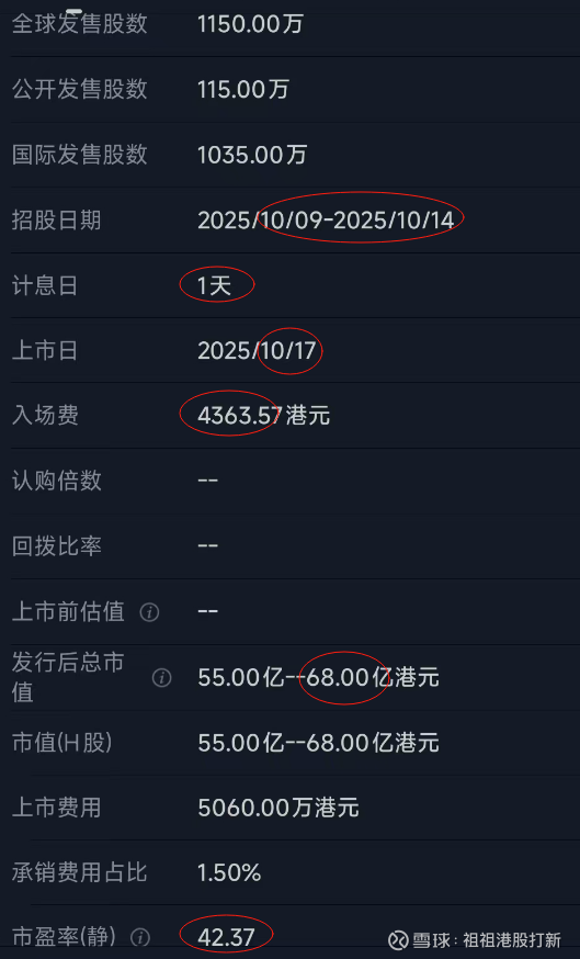 【时间流程】上周四10.09日第一天招股,14日周二早9点左右截止,15日周三18点左右可查中签,16日周四16:15暗盘,17日周五09:15首日。