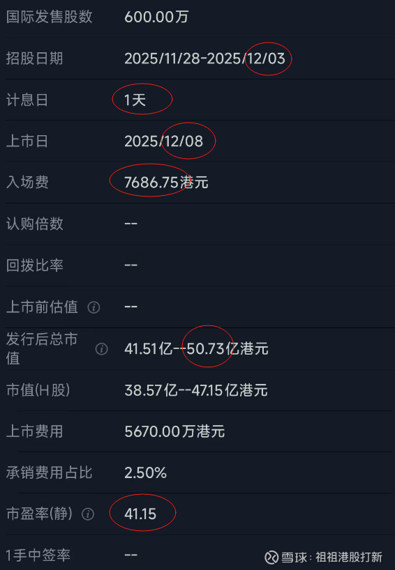 【时间流程】上周五11.28日第一天招股,12.03日周三早9点半左右截止,4日周四18点左右可查中签,5日周五16:15暗盘,8日下周一09:15首日。