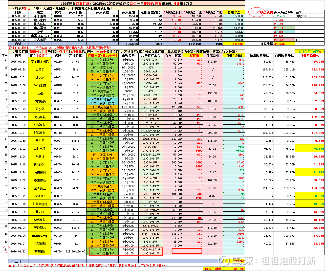 【祖祖打新方案-01.22日更新】祖祖100W持股港股打新,20250612起公开验证[目标一年赚50W:持股赚30W,打新赚20W],见置顶帖。