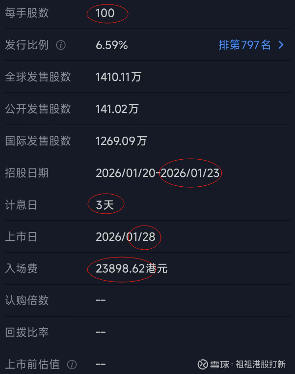 【时间流程】周二01.20日第一天招股,01.23日周五早9点半左右截止,26日下周一18点左右可查中签,27日下周二16:15暗盘,28日下周三09:15首日。