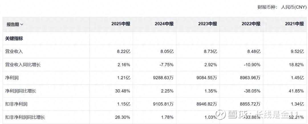 从新披露的中期报告看,2025年上半年公司再接再厉,实现营业收入8.22亿,同比增长2.16%;净利润1.21亿,同比增长30.48%;扣非净利润1.15亿,同比增长26.3%。