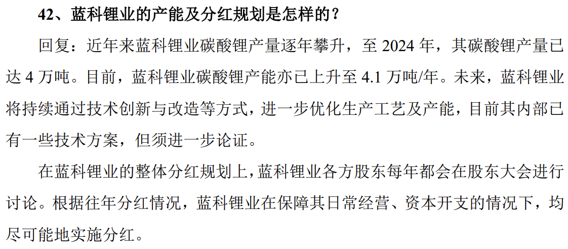 科达明确说,蓝科锂业历年分红是在保障日常经营、资本开支的情况下尽可能实施分红。