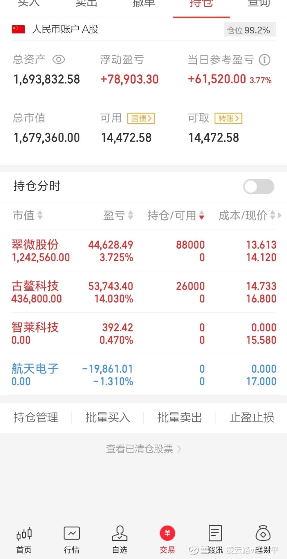 真正的破局,从不是等风口撞大运,而是沉下心打磨一套属于自己的交易逻辑——能扛住暴跌的风控,能抓住波段的节奏,更有不贪不恋的定力$翠微股份(SH603123)$ $古鳌科技(SZ300551)$ $智莱科技(SZ300771)$ #CPO持续走强,易中天集体大涨# #可控核聚变概念走强,国机重装涨停#