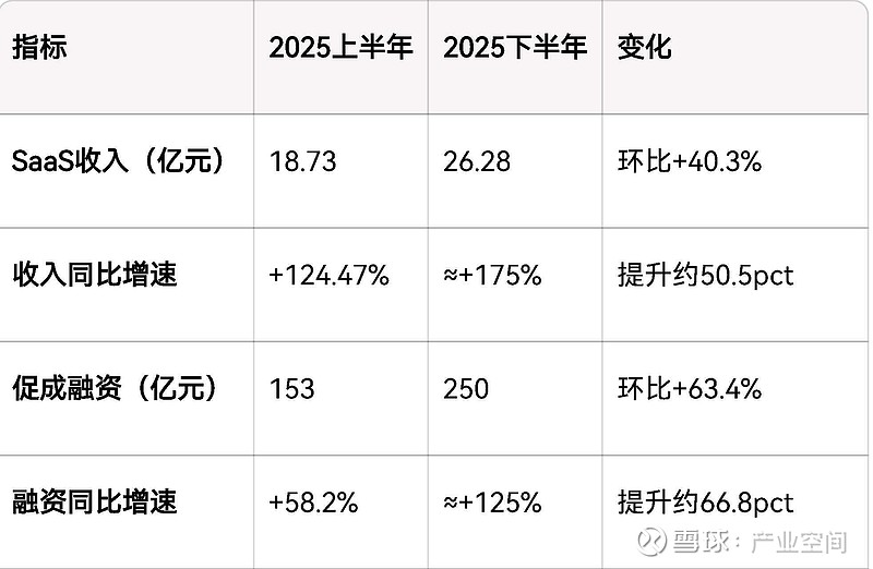 SAAS业务上下半年数据对比,公司正在快速向技术服务商转型。