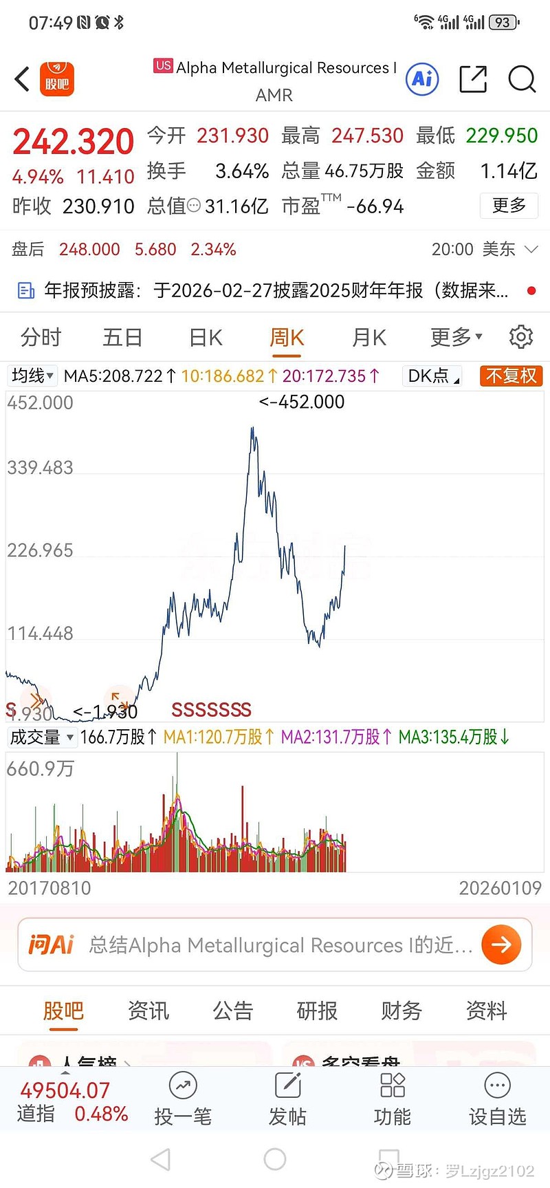 家人们,最近美股煤炭股彻底炸了!尤其是小盘股AMR,曾经从1块多美元涨到452美元,最高翻了388倍,直接把全球煤炭的热度炒到顶峰!这逻辑其实特简单:煤炭是全球刚需硬通货,美股涨就说明全球煤炭供需都偏紧,A股煤炭股没理由不跟涨,而上海能源,就是最像AMR的中国版潜力股!