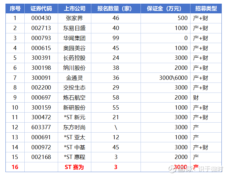 深圳创业板上市公司$ST赛为(SZ300044)$ 在预重整投资人招募过程中,因仅18天的超短招募期、苛刻的报名条件及不到5家的报名人数,引发债权人、意向投资人和中小投资者多方质疑,被怀疑存在"内定"嫌疑和暗箱操作。
