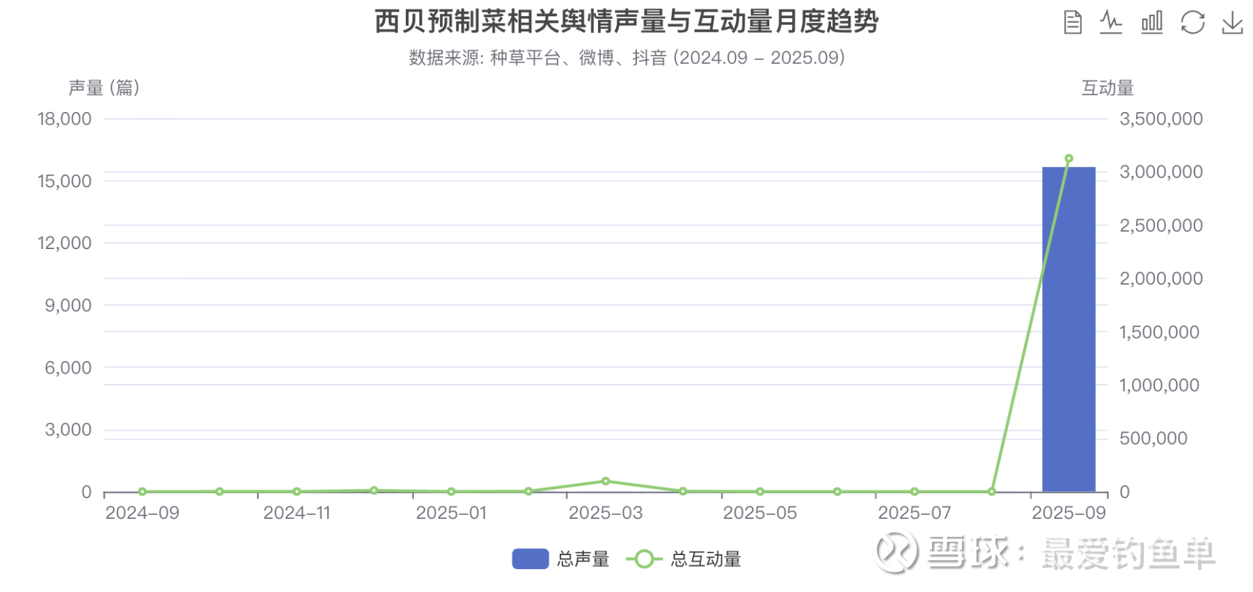 如图所示,在2025年9月之前,关于西贝预制菜的讨论声量和互动量均处于极低水平。然而,事件爆发后,总声量激增至超过1.5万篇,总互动量更是突破312万次,显示出舆论风暴的巨大能量。[13,14,15,16,17,18]