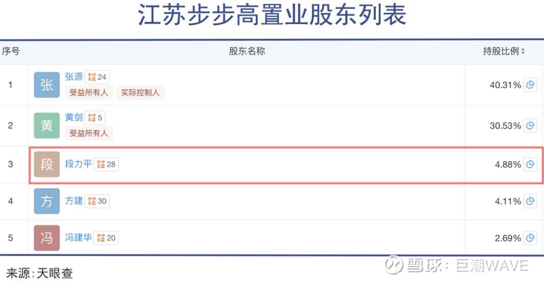 据天眼查显示,段永平的哥哥段力平是江苏步步高置业的第三大股东,持股4.88%;苏州步步高投资的股东列表中,王晓梅持股4.73%股份,有资料显示,段力平妻子也叫王晓梅。