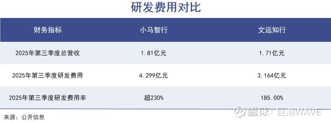 从财务数据看,两家公司都面临“增收不增利”的行业通病。2025年第三季度,小马智行营收1.81亿元,同比增长72%;文远知行营收1.71亿元,同比激增144.3%。然而营收增长亮眼的背后,是亏损持续扩大:小马智行当季净亏损4.38亿元,文远知行净亏损3.07亿元。