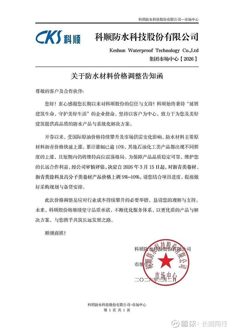 $科顺股份(SZ300737)$