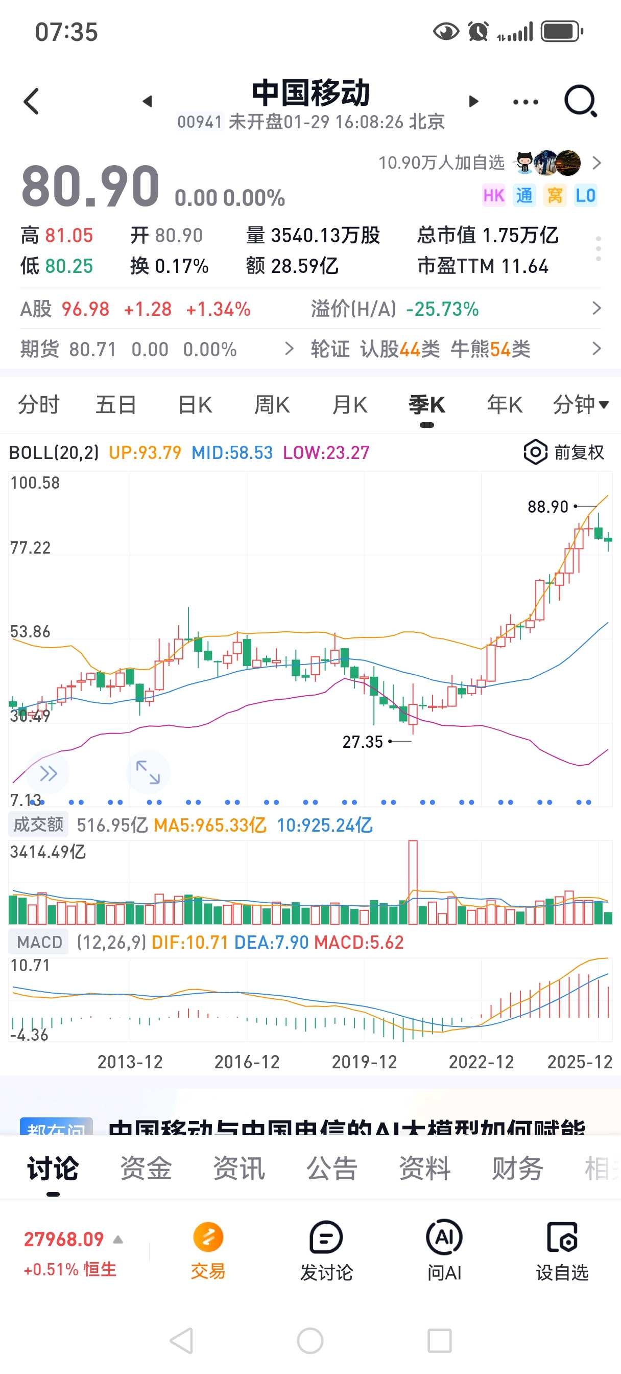 中国移动股票投资:2021年很多人推荐买入中国移动股票,因政府工作报告不再提减税降费、价格战缓和、加大分红等因素,股票上涨带来收益。2021年的时候,中移动看到一个现象,就是2013年人均手机话费60块,后来只有40多块钱,因为政策每一年都在讲减税降费,价格一直降。直到2021年这一年,政府工作报告不再提减税降费这个事了。因为只要减税降费,三家运营商就打价格战,收入在降,后来不讲减税降费,不打价格战了,价格开始往上涨,利润就往上涨了。然后,因为这个美国人把这个中移动中电信中海油踢出了美国市场,外国人都卖完了。然后开始加大分红,股票就开始大