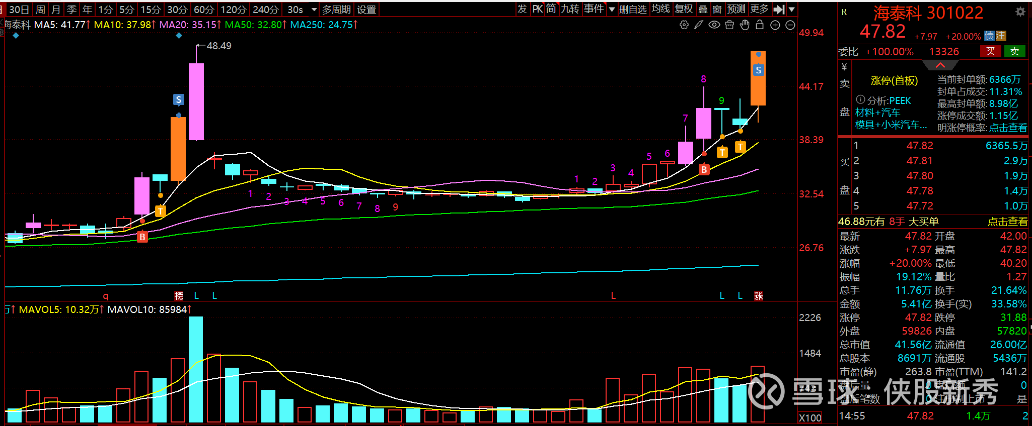 昨天新秀给大家提示了一下,找找以前的一些机会,今天就拿下了20cm!$海泰科(SZ301022)$ 其实这个的逻辑一直没有走完的,近期像横河精密、金现代等等都是这样走出来的。所以,近期大家会发现我分享的新面孔很少,不是因为我不愿意分享了。而是因为曾经分享过的有些机会出现了,需要常回头看看。机会是在耐心中酝酿出来的,一旦出现,就要把握。