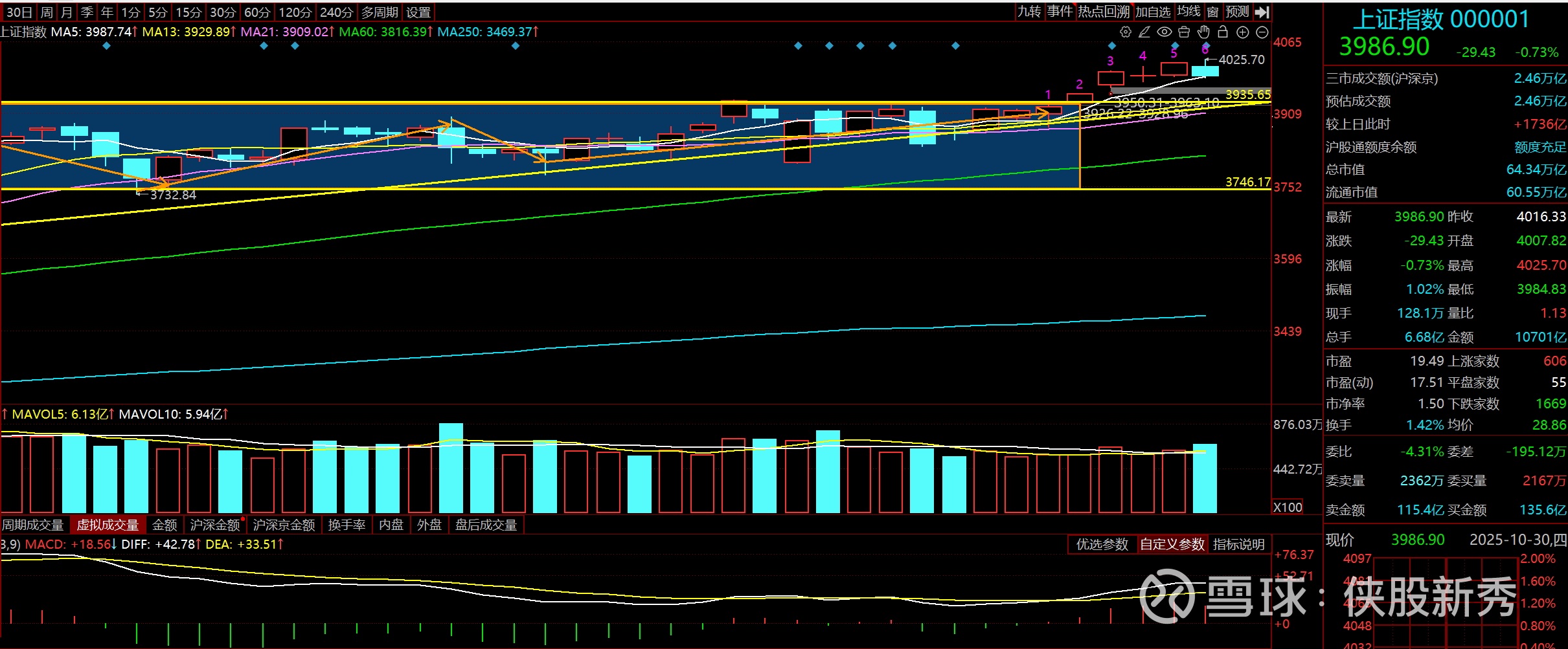 指数这里如预期,突破4000点后很容易引发抛压盘,毕竟这里属于多空力量博弈的密集区。上面的意思很明显,不想让这一轮行情涨太快,因此有压盘是正常的。今日是突破4000以后的首次回踩,刚好调整到了五日线的位置,趋势依旧在。明天正常再下探,到缺口位置可能会有低吸机会出现。当下的行情给我的感觉是慢慢推动,避免过快过热导致的负反馈。![]()
