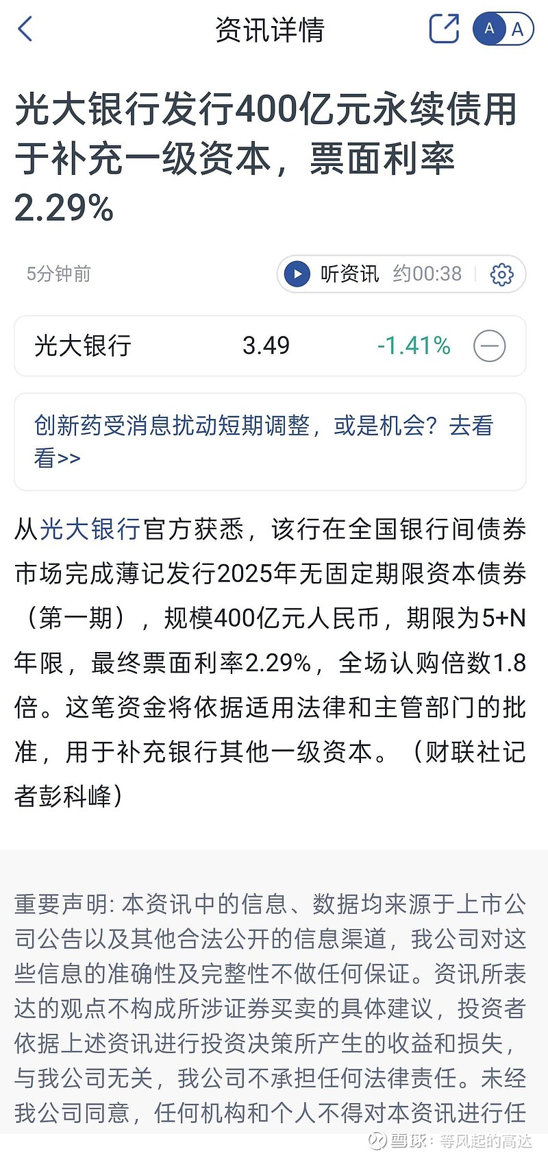 消息落地,光大银行补充核心资本金采用的是永续债模式,和四大行增发不同,永续债不分摊股息,所以光大银行分红大概率能维持在五个点之上。