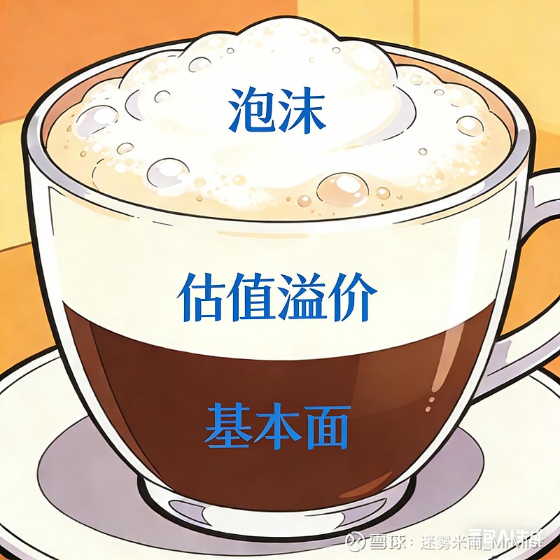 中间层的牛奶,就是叙事堆积、害怕错过(FOMO)、线性外推、群体非理性等所引发的估值溢价。