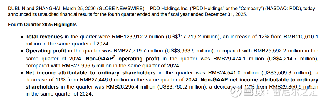 拼多多借时代的机会在10年就达到了现今4000亿左右营业额和1000亿左右利润,但他们公司治理和平台产品的确还没有形成与规模相符的能力,还需快速提高和补强。对于拼多多来说,好消息是他们在国内这么多电商里面是最专注的,现在所走的是最符合国家发展需求和符合零售行业本质的路,不好的消息是他们离最终所要达成的愿景还有极其远的距离。电商平台做的是零售属性的生意,国内零售行业的赢家最终还是需要像美国的各类零售商一样,在各自的商业模式里把供应链效率、产品质量、履约速度还有运营能力做好,给生态里的客户提供持续不断的价值$拼多多(PDD)$ $沃尔玛(WMT)$ $好市多(COST)$