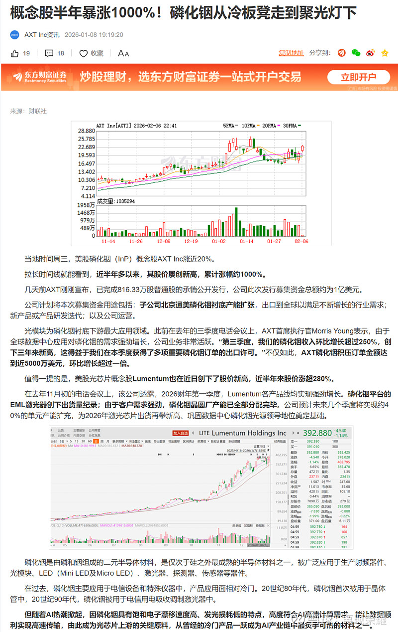 $AXT(AXTI)$ AXTI 给的报告是 2026 2027 年磷化铟逐年翻倍,2028 会因为 cpo,可能指数级上量。$ST京蓝(SZ000711)$ 只要盯着美股AXT 映射就好了。。。包括$云南锗业(SZ002428)$