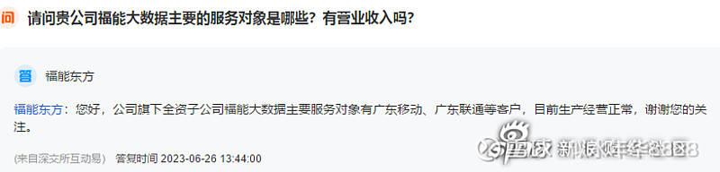 公司旗下全资子公司福能大数据主要服务对象有广东移动、广东联通等客户
