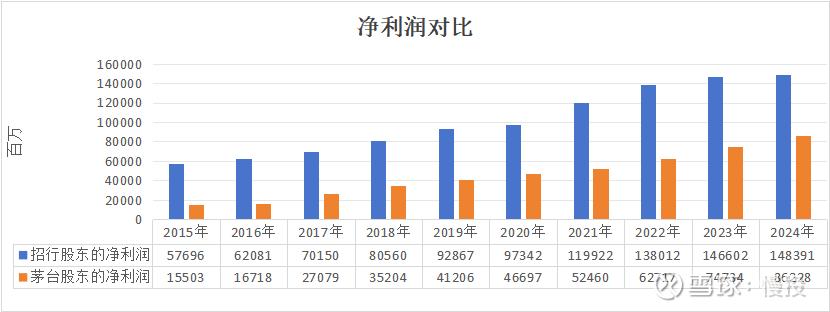 肯定有很多小伙伴说利润增速的问题,的确,茅台利润增长的倍数明显高于招行,但!绝对值远低于招行。