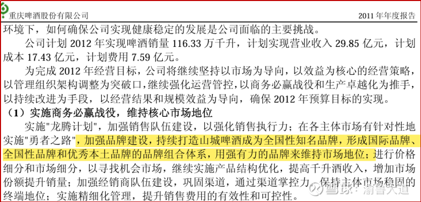 当时,嘉士伯还通过重啤向证监会及社会公众重申承诺。其在重啤股份2011年财报中提到,会“加强品牌建设,持续打造山城啤酒成为全国性知名品牌”。
