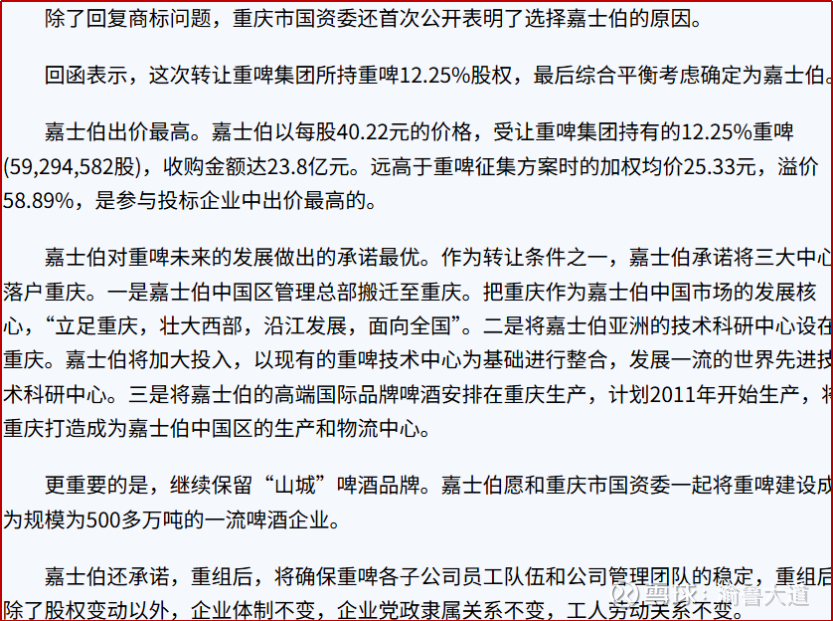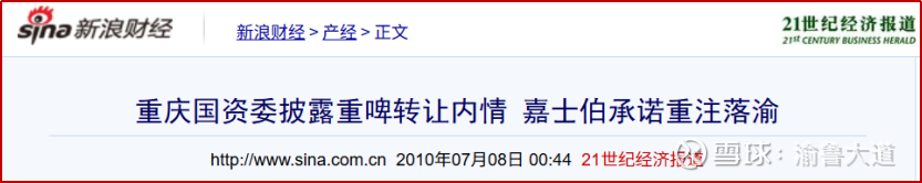 [2] 文静.重庆国资委披露重啤转让内情 嘉士伯承诺重注落渝.21世纪经济报道.
