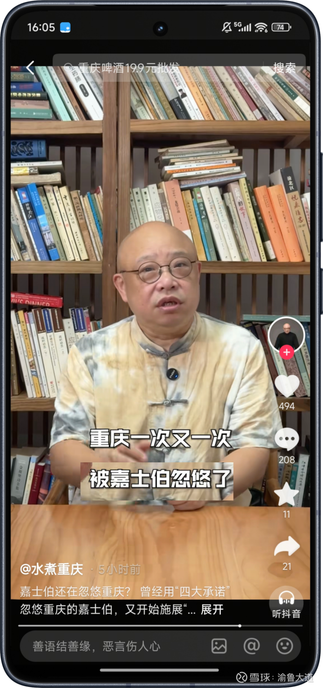 就是这些话,被重庆知名学者司马青衫看到后,甚至直言“重庆一次又一次被嘉士伯忽悠了”。