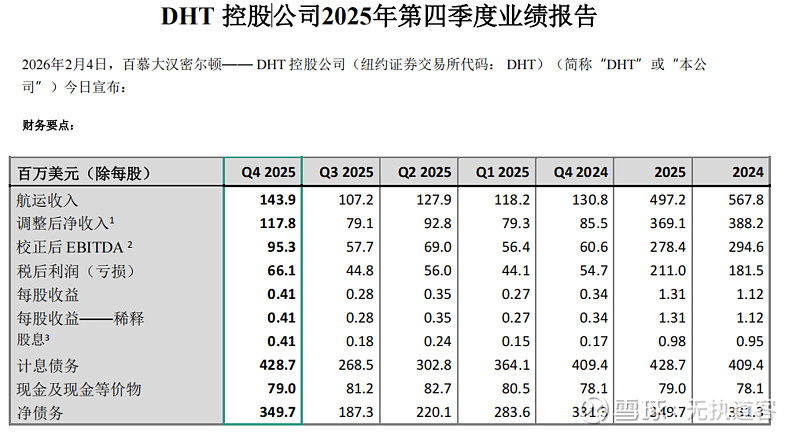 总的来说,DHT在2025年第四季度抓住了VLCC市场的景气周期,通过高效的船队运营实现了显著的业绩增长。这与其之前出售老旧船舶、更新船队的策略是一脉相承的。
