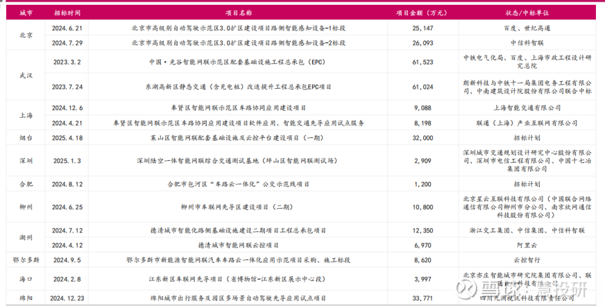 据不完全统计,迄今已有北京、上海、武汉、深圳等各大城市出台了关于“车路云”一体化项目的招标。
