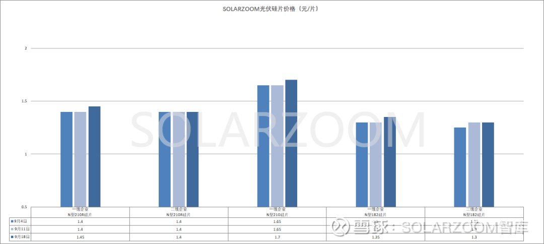 硅料:本周国内硅料价格坚挺维稳,头部硅料企业N型用料报价在53-55元/公斤,下游硅片价格上涨顺利传导的情况下,硅料成交价格也在继续小幅上涨,主流成交价格来至50元/公斤,同时本周实际成交出现51-52元/公斤的高位价格;当前国内硅料企业所签订单较为充足,排产发货排期基本已至10月。颗粒硅方面,本周颗粒硅报价涨至50元/公斤以上,实际成交在49-50元/公斤区间,相比上周小涨。本周国内新1/2/3级能耗标准的相关意见稿已出,预计随着后面新标落地实施后,硅料供需格局预计将有实质性的改善。