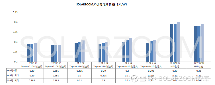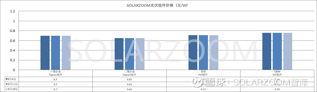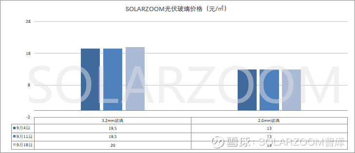 辅材方面,9月国内玻璃厂商对光伏玻璃报价进行大幅上涨,上涨幅度在2元/㎡左右,2.0mm的光伏玻璃价格报价从11.5元/㎡上涨至13.5元/㎡,3.2mm光伏玻璃价格报至20元/㎡左右,9月价格预计暂不会有调整。