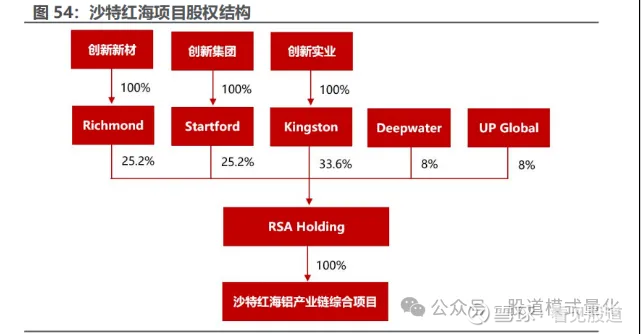 沙特红海项目盈利预测:这是公司最大的预期差和未来增长引擎,公司持有该项目 25.2%股权,沙特红海项目具备低能源成本、贴近欧洲市场、高加工费三大优势。沙特能源资源丰富,截至 2023 年底天然气储量全球前五,能源成本优势显著,公司未来将向沙特国家电网采购电力。而根据公开资料,公司的电解铝完全生产成本1700美元/吨,折合人民币12000元,处在全球成本最低的电解铝产能区间 ,项目投产后电解铝盈利水平预计好于国内。该项目首期规划50万吨电解铝+铝合金产能,最终产品面向沙特本土和欧美市场,项目建设期18-24个月,预计2027年投产。沙特天然气资源丰富,电力成本较低,项目投产后将显著增厚公司业绩。