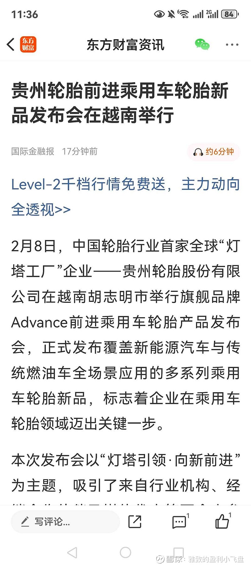国际金融报2月8日,中国轮胎行业首家全球“灯塔工厂”企业——贵州轮胎000589股份有限公司在越南胡志明市举行旗舰品牌 Advance前进乘用车轮胎产品发布会,正式发布覆盖新能源汽车与传统燃油车全场景应用的多系列乘用车轮胎新品,标志着企业在乘用车轮胎领域迈出关键一步。