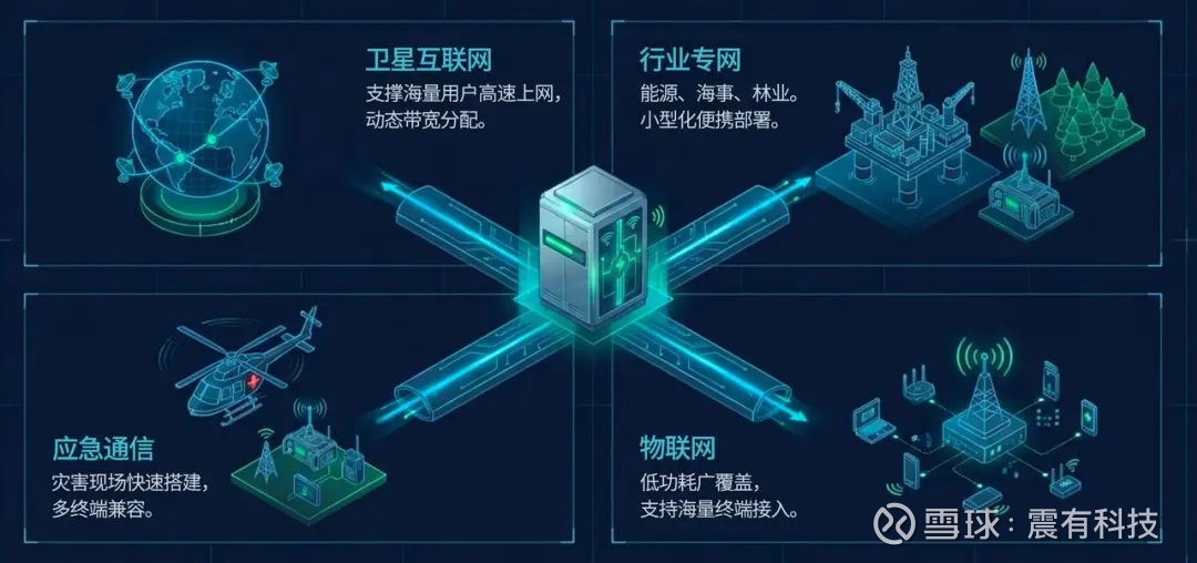 ▪ 行业专网:为能源、海事、林业等行业提供专属通信服务,依托小型化、便携化部署优势,完美适配偏远地区、移动场景的通信刚需;
