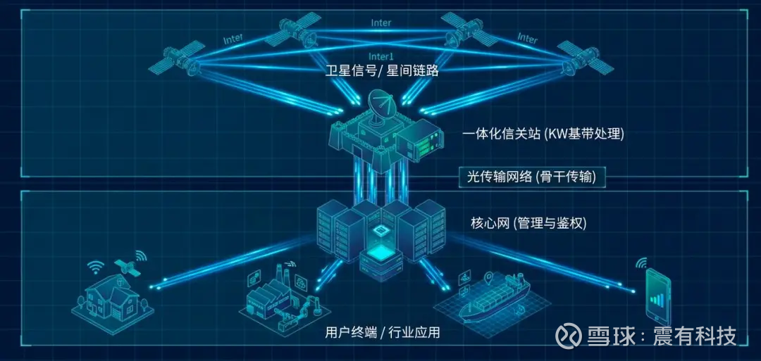 震有核心网构建 “地面核心网 + 星载核心网 + 核心网安全” 三位一体架构,实现天地协同与全链路防护: