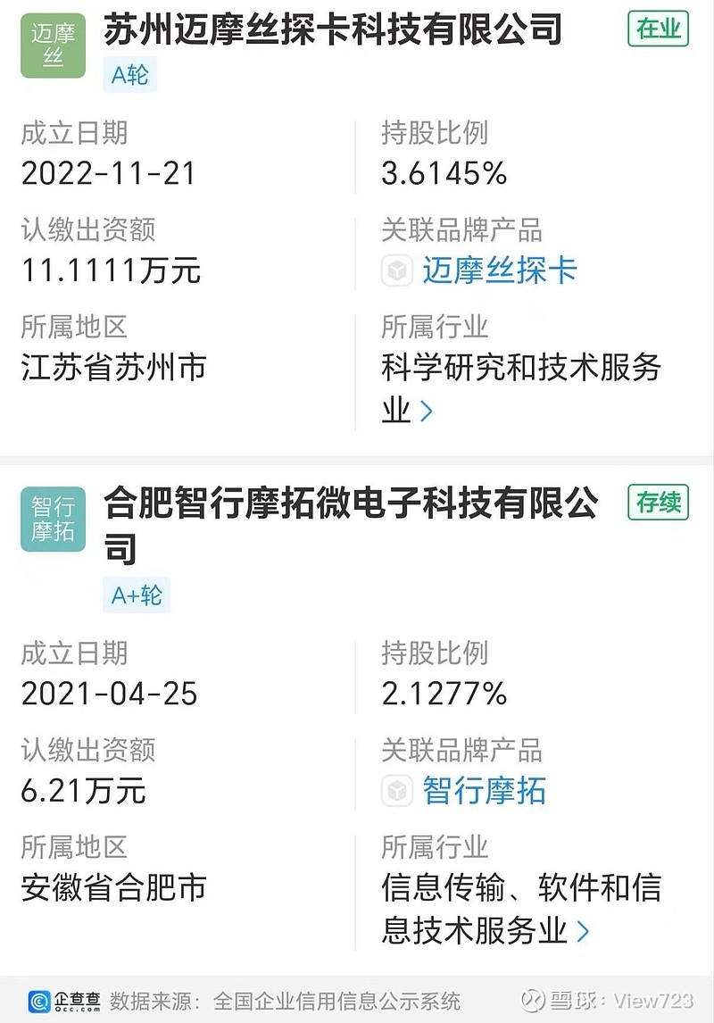 子公司迈摩丝探卡和合肥智行由暗壳投资!