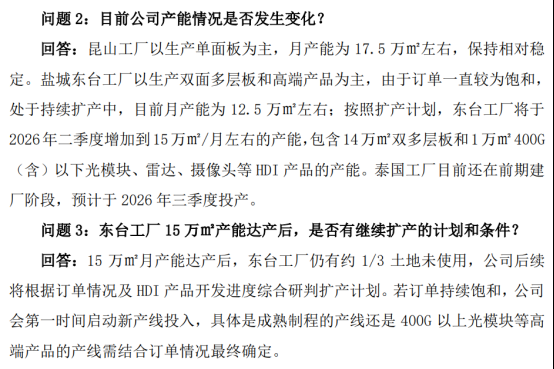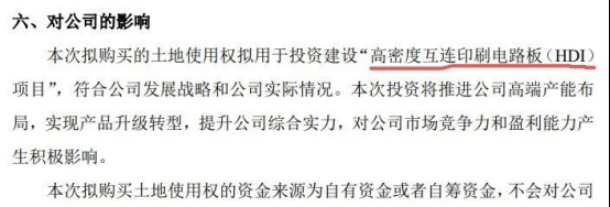 此外,公司今年2月2日的公告中提到,拟在东台工厂西侧新购买50亩土地,用于投资建设高密度互连印刷电路板(HDI)项目。